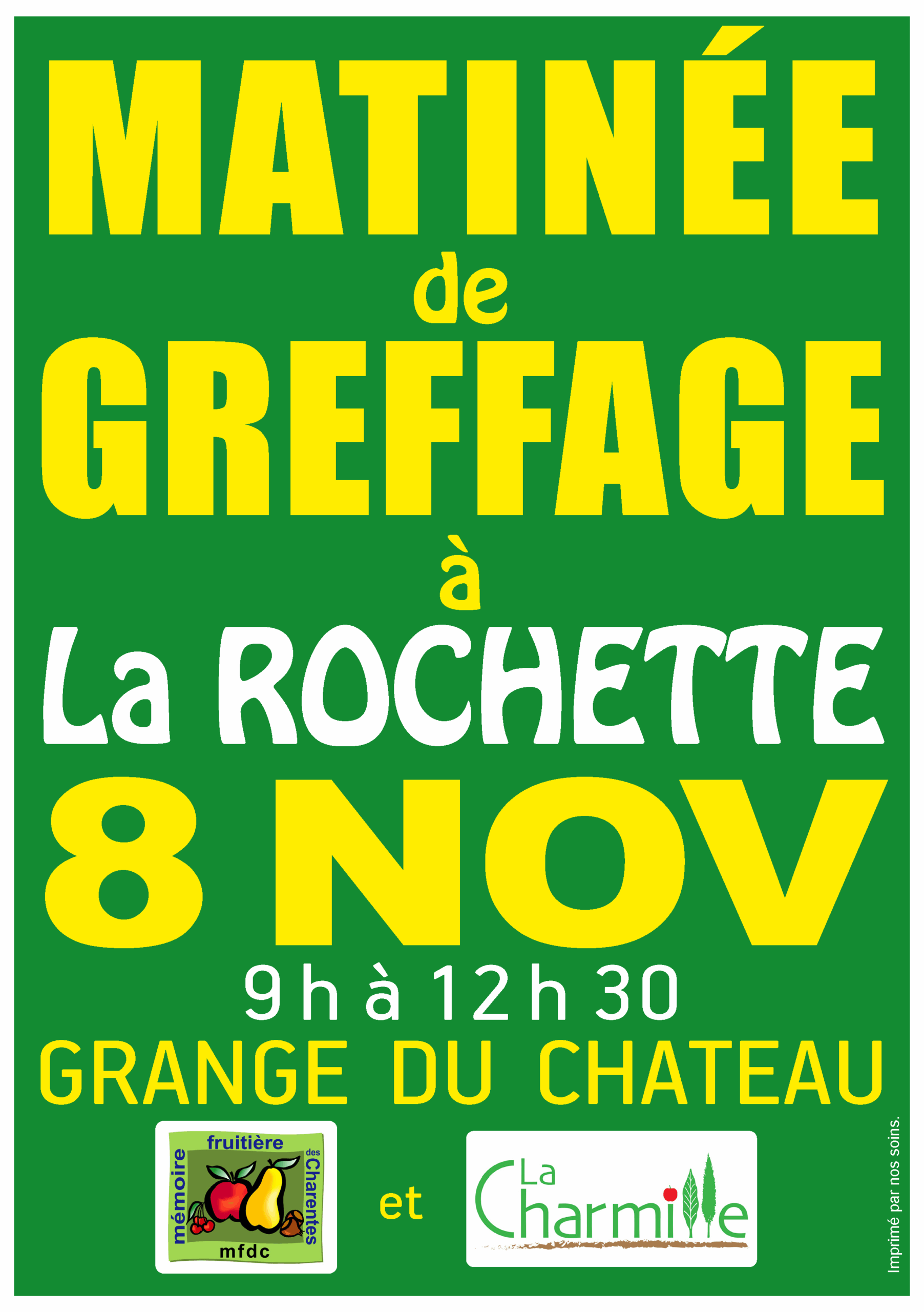 - 8 novembre 2025 : greffage à La Rochette (16), grange des fêtes, de 9h à 12h30 , FRUITIERS A NOYAUX, matin uniquement
